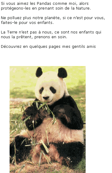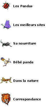 Les Pandas | Les meilleurs sites | Sa nourriture | Bébé panda | Dans la nature | Correspondance